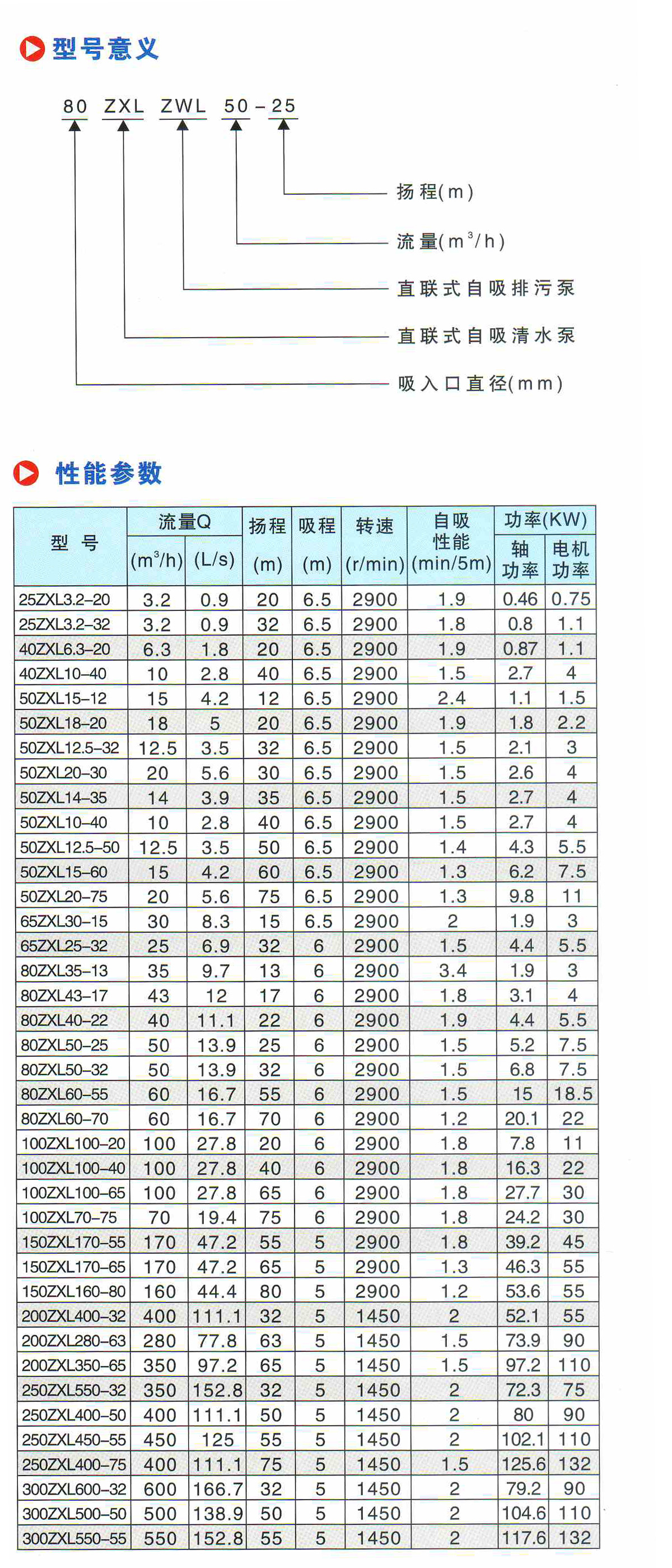 水泵參數說明